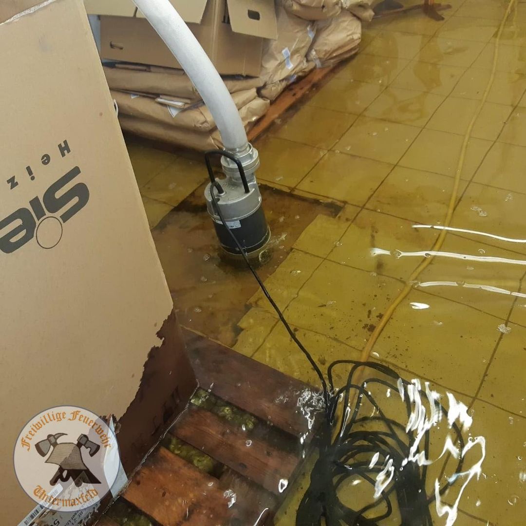 Im Keller stand das Wasser, das wir mit Hilfe unserer Pumpe beseitigt haben.